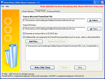 PowerPoint Slide Show Converter wandelt eine PowerPoint-Präsentation in eine ausführbare EXE-Datei um. Unabhängig von dem Microsoft-Präsentationsprogramm oder dem kostenlosen PowerPoint-Viewer laufen die Präsentationen so auf jedem Windows-Rechner.